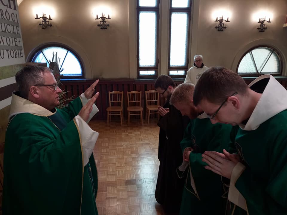Bracia diakoni: Władysław, Salomon i Baltazar otrzymali specjalne błogosławieństwo ministra prowincjalnego o. Antonina Brząkalika OFM na trud głoszenia pierwszych w swoim życiu rekolekcji. Błogosławieństwo prowincjała otrzymali także Jubilaci: o. Juliusz Rydlewski OFM i o. Augustyn Loska OFM, którzy w tym roku będą celebrować jubileusz 60-lecia kapłaństwa.