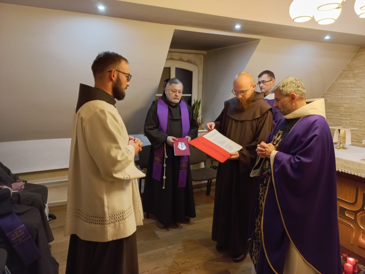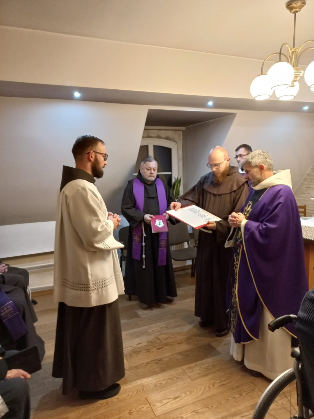 Dnia 19 grudnia b.r. w kaplicy p.w. św. Jana Pawła II (infirmeria prowincjalna) br. Klaudiusz Mainka otrzymał z rąk Ministra prowincjalnego br. Witosława Sztyka błogosławieństwo na pełnienie posługi nadzwyczajnego szafarza Komunii świętej. Błogosławieństwo to zostało udzielone na podstawie dekretu Wikariusza Generalnego Archidiecezji Katowickiej bpa Marka Szkudło z dnia 7.11.2022.