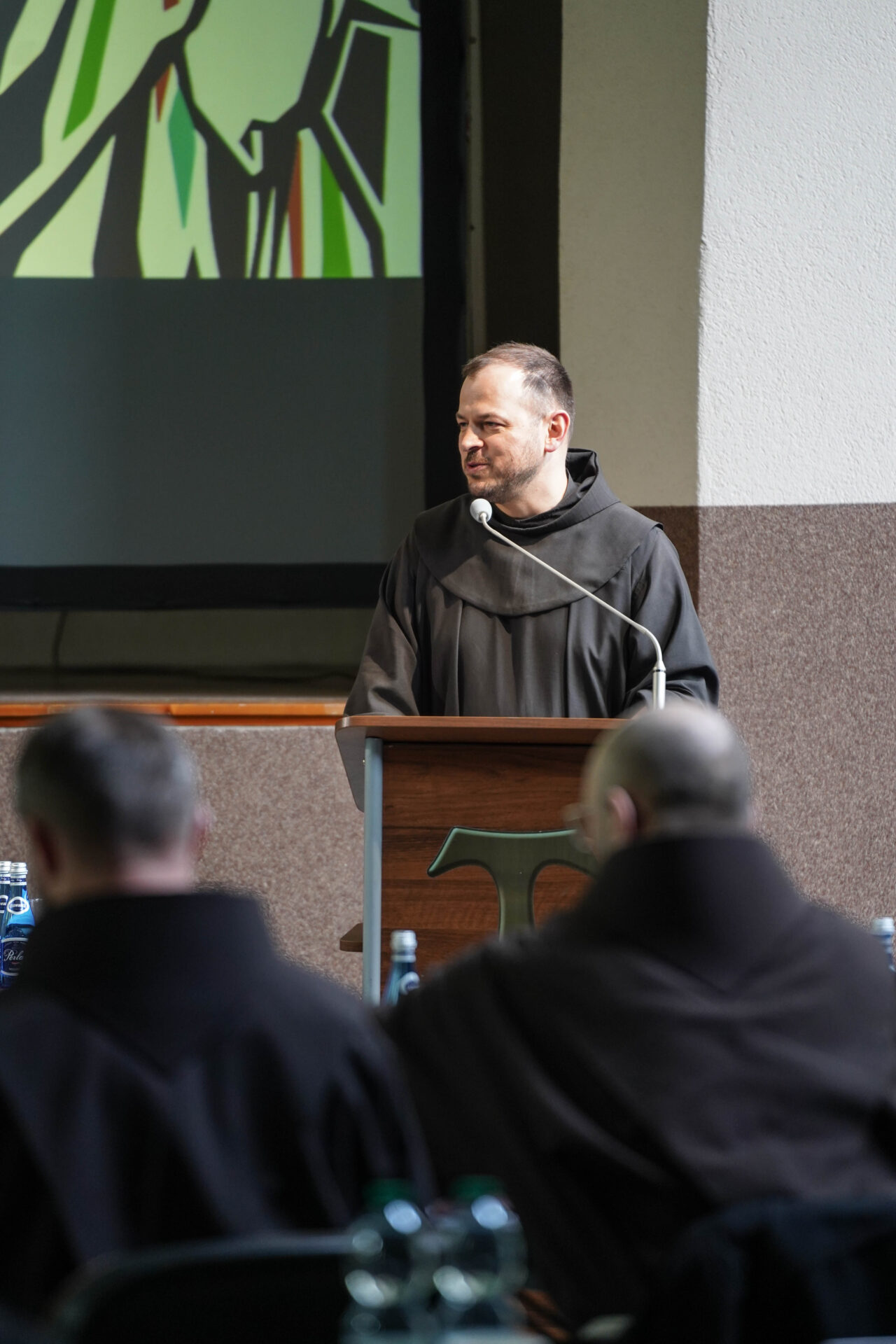 Przedpołudniową sesję poprowadził br. Dymitr Żeglin OFM, który po słowie wprowadzenia przekazał głos Definitorowi Generalnemu br. Konradowi Cholewie OFM – ten odczytał list Ministra Generalnego Zakonu Braci Mniejszych br. Massimo Fusarelliego OFM, do uczestników Kapituły.