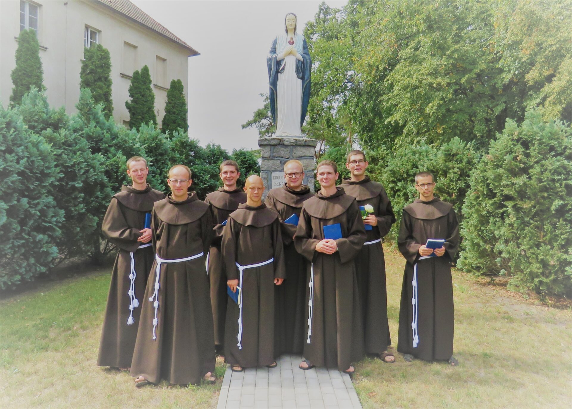 W sobotę, 25 sierpnia 2018 r.w Sanktuarium św. Franciszka z Asyżu w Miejskiej Górce odbyła się uroczystość pierwszej profesji zakonnej. Po roku próby, którą ośmiu nowicjuszy odbyło w miejscowym klasztorze Zakonu Braci Mniejszych, złożyli na ręce ministra prowincjalnego o. Antonina Brząkalika OFM swoje pierwsze śluby. Otoczeni modlitwą współbraci z prowincji zakonnej, kapłanów z rodzinnej parafii, rodziców, krewnych oraz przedstawicieli lokalnej wspólnoty wiernych, ślubowali: … „żyć do 4 października 2019 roku, w posłuszeństwie, bez żadnej własności i w czystości”.