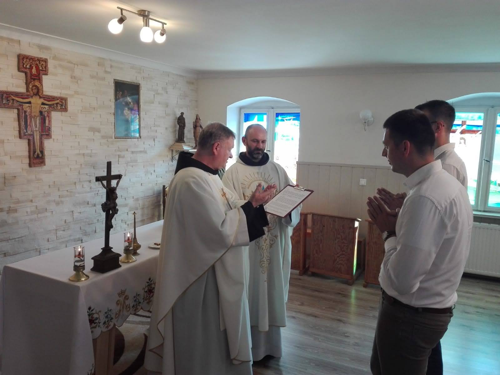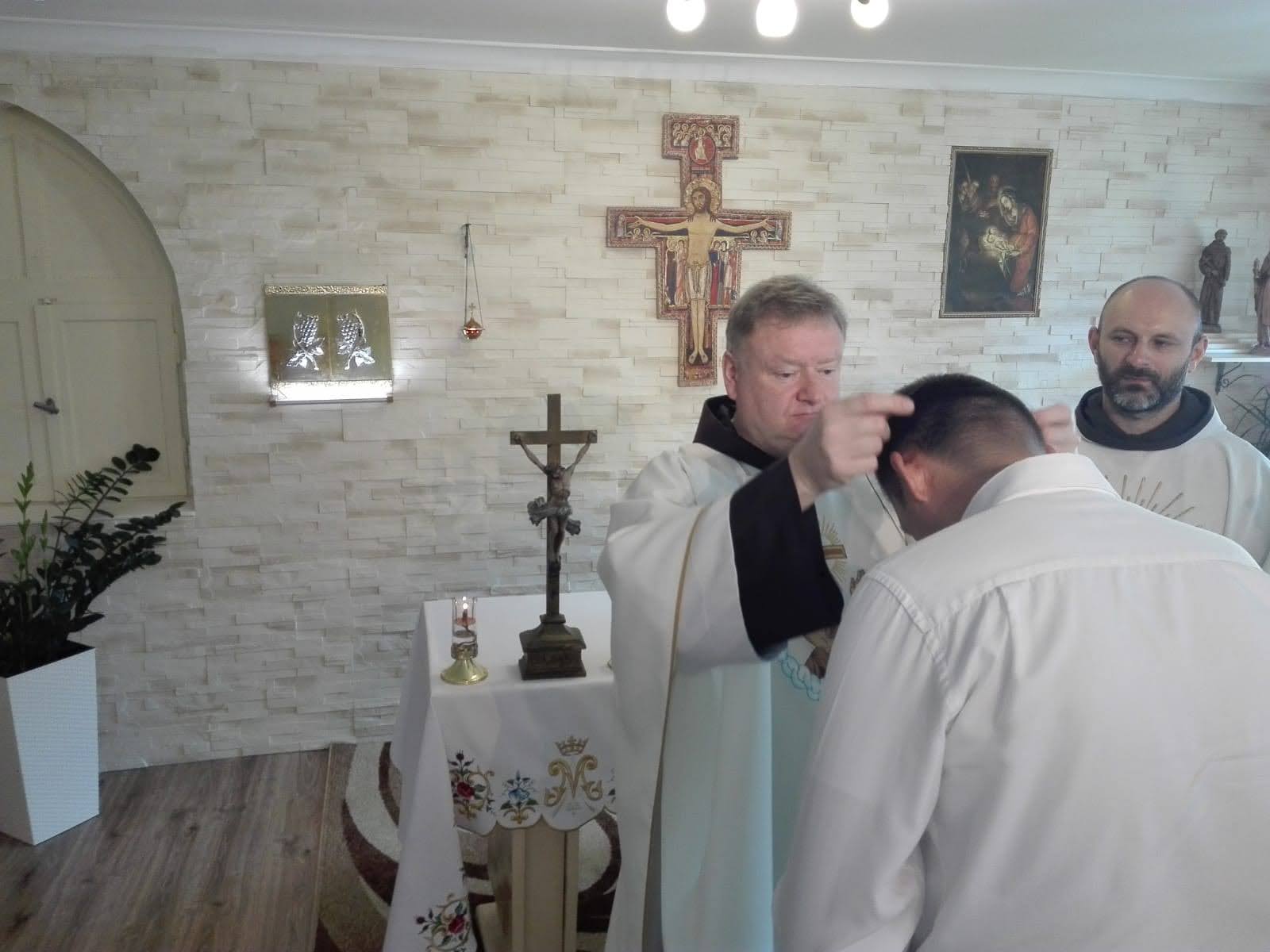 Podczas Mszy św. dwóch braci postulantów otrzymało znak Tau, który ma przypominać im o rozpoczętej drodze.