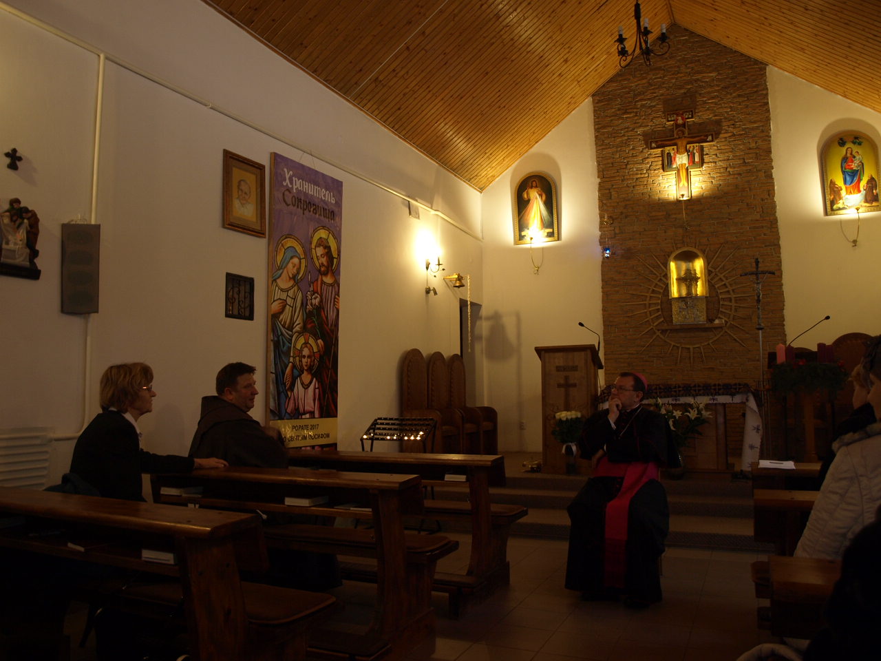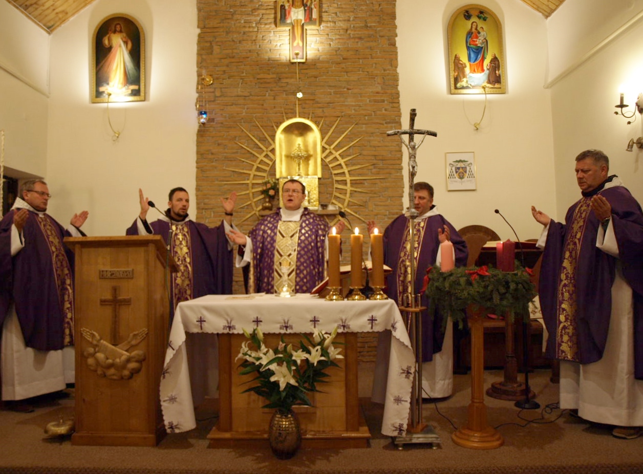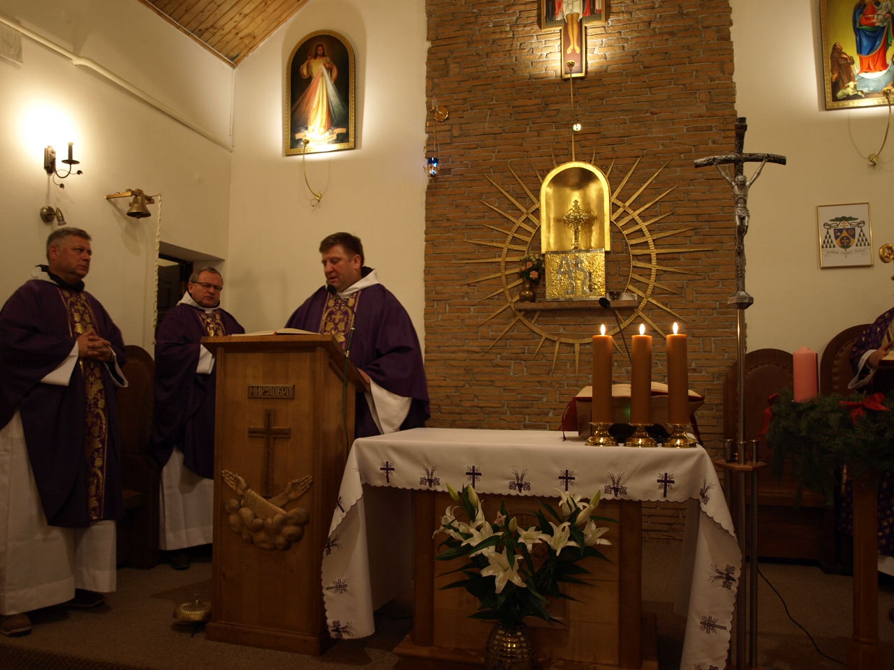 Przed Mszą św. odmówiono różaniec w intencji dziękczynnej za okrągły jubileusz 25 lat parafii i obecności franciszkanów z naszej prowincji w Smoleńsku. Różaniec poprowadził abp Paweł Pezzi.
