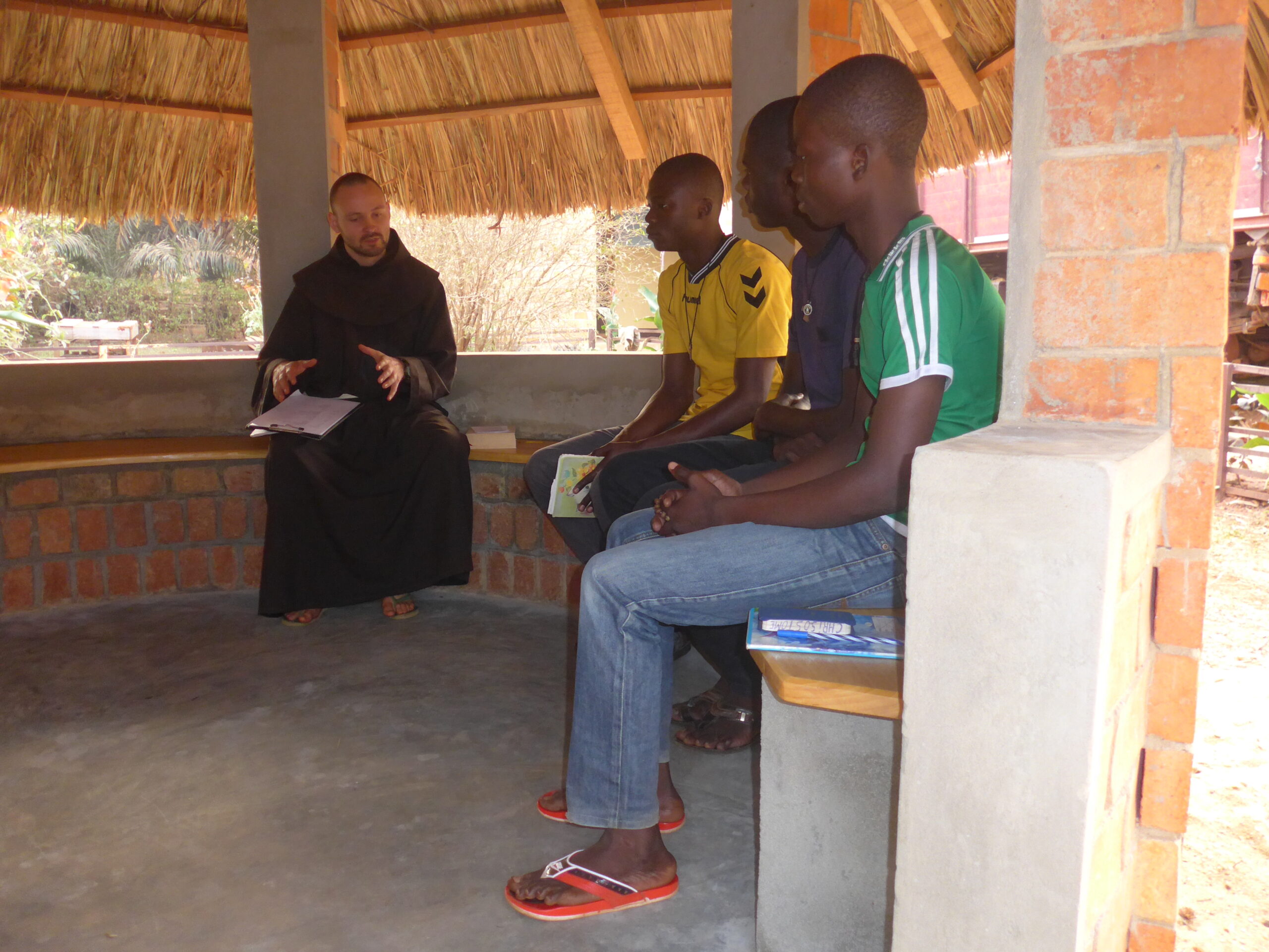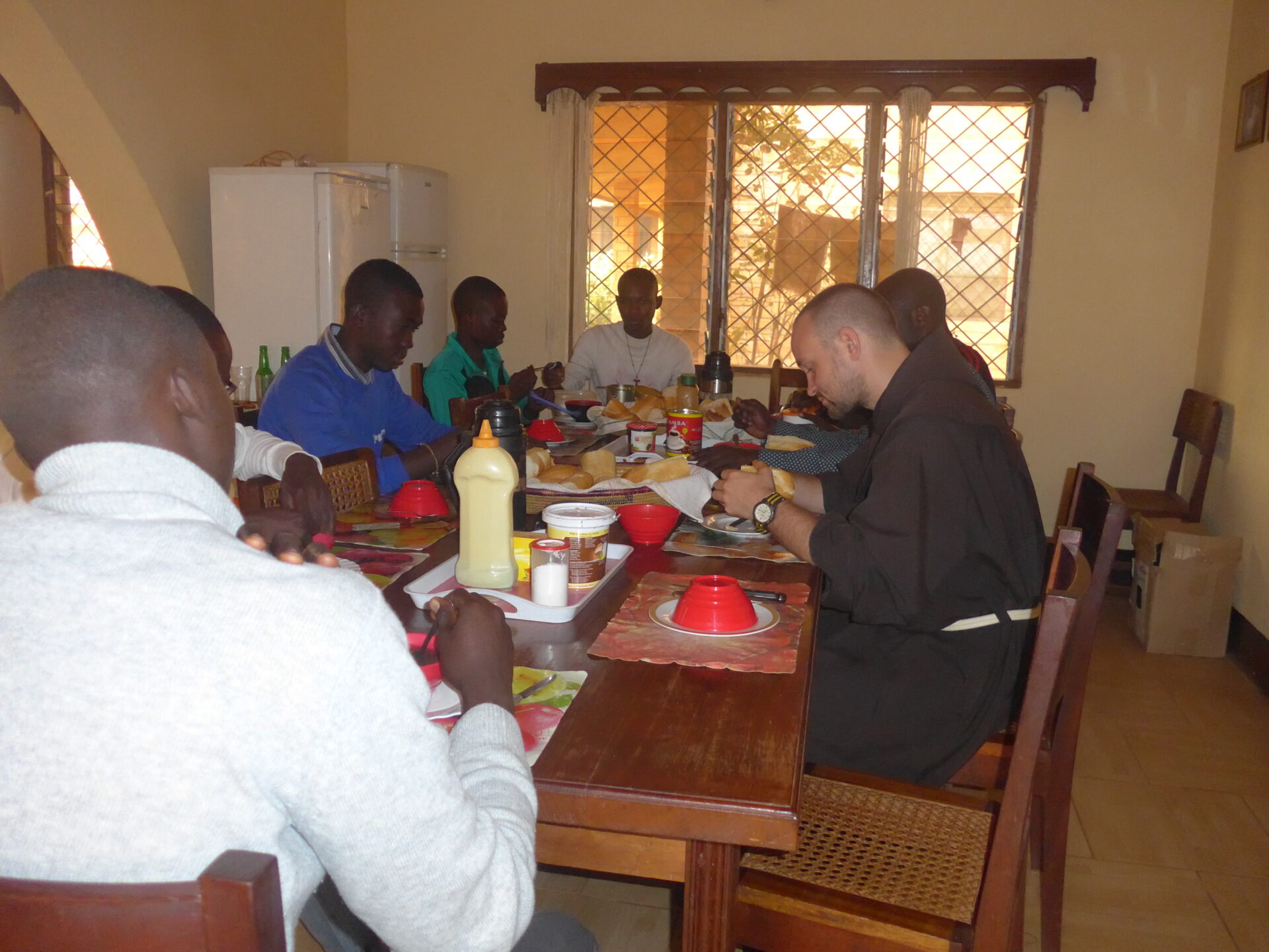 Ostatni miesiąc to oczywiście nie tylko praca fizyczna ale i formacyjna. Podjęliśmy się wyzwania (może trzeba by napisać „ryzyka”) zaproszenia niektórych aspirantów na weekend do naszej wspólnoty. Inicjatywa była motywowana chęcią zawiązania głębszych więzi z kandydatami. Spośród piętnastu figurujących na liście wybrałem czterech, których już nieco znamy i którzy rokują dobre nadzieje. Przybyli do nas w ubiegły piątek ok godziny 16h00. Zainstalowali się w wolnych pokojach postulantów. Rozpoczęliśmy od małego wprowadzenia, wyjaśniając reguły życia w klasztorze, po czym w kilku słowach podzieliłem się z nimi rozmyślaniem na temat tego czym jest samo powołanie : głos który dociera do nas z zewnątrz (nie od nas samych), i który możemy usłyszeć i rozpoznać głownie na modlitwie. Jako że ta mini-konferencja była wprowadzeniem do rozmyślania i do mającej się rozpocząć o 20h15 adoracji, dlatego skierowałem ich myśli na pytanie: co dzieje się w moim sercu? Jakie rodzą się tam uczucia, emocje, o czym marzę, czego szukam. Z takim pytaniem pozostawaliśmy przez cały piątkowy wieczór. Sobotę rozpoczęliśmy – jak to w klasztorze – modlitwą Jutrzni i Mszą Świętą. Później był czas pracy. Jak się okazało, bardzo doceniony przez kandydatów, ale i przez naszą wspólnotę, bo dodatkowe 8 rąk pozwoliło nam posunąć wiele spraw porządkowych do przodu. W południe spotkaliśmy się znów w kaplicy na modlitwie. Po obiedzie krótka sjesta i ok 15h00 całą wspólnotą rozważaliśmy Słowo Boże z niedzieli. Po tym dzieleniu się, zaproponowałem naszym młodym braciom drugą konferencje. Tym razem na temat historii życia. Ta konferencja też była swego rodzaju wprowadzeniem do indywidualnej pracy duchowej. Wzorem „Siedmiu kroków rozeznania powołania”, praktykowanych w FCMP w Chorzowie, także nasi aspiranci w ramach rozeznania swojego powołania są zaproszeni do tego, by w swojej przeszłości odnaleźć znaki Bożego wołania. Czas weekendu był zatem pewnym wprowadzeniem do indywidualnej pracy, której owocami podzielą się ze mną za dwa, trzy tygodnie, gdy będą już gotowi… i gdy podejmą decyzję kontynuowania drogi rozeznawania powołania. Sobotni wieczór poświęcony był na film o św. Franciszku. W niedzielę natomiast zabrałem kandydatów na jedną z okolicznych wiosek, by poczuli nieco z apostolatu, który jest treścią życia każdego misjonarza a także i franciszkanów. Wróciliśmy na spóźniony obiad. Popołudniu pozostało nam już tylko zakosztować czasu rekreacji – były ciastka, jogurt i napoje.