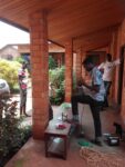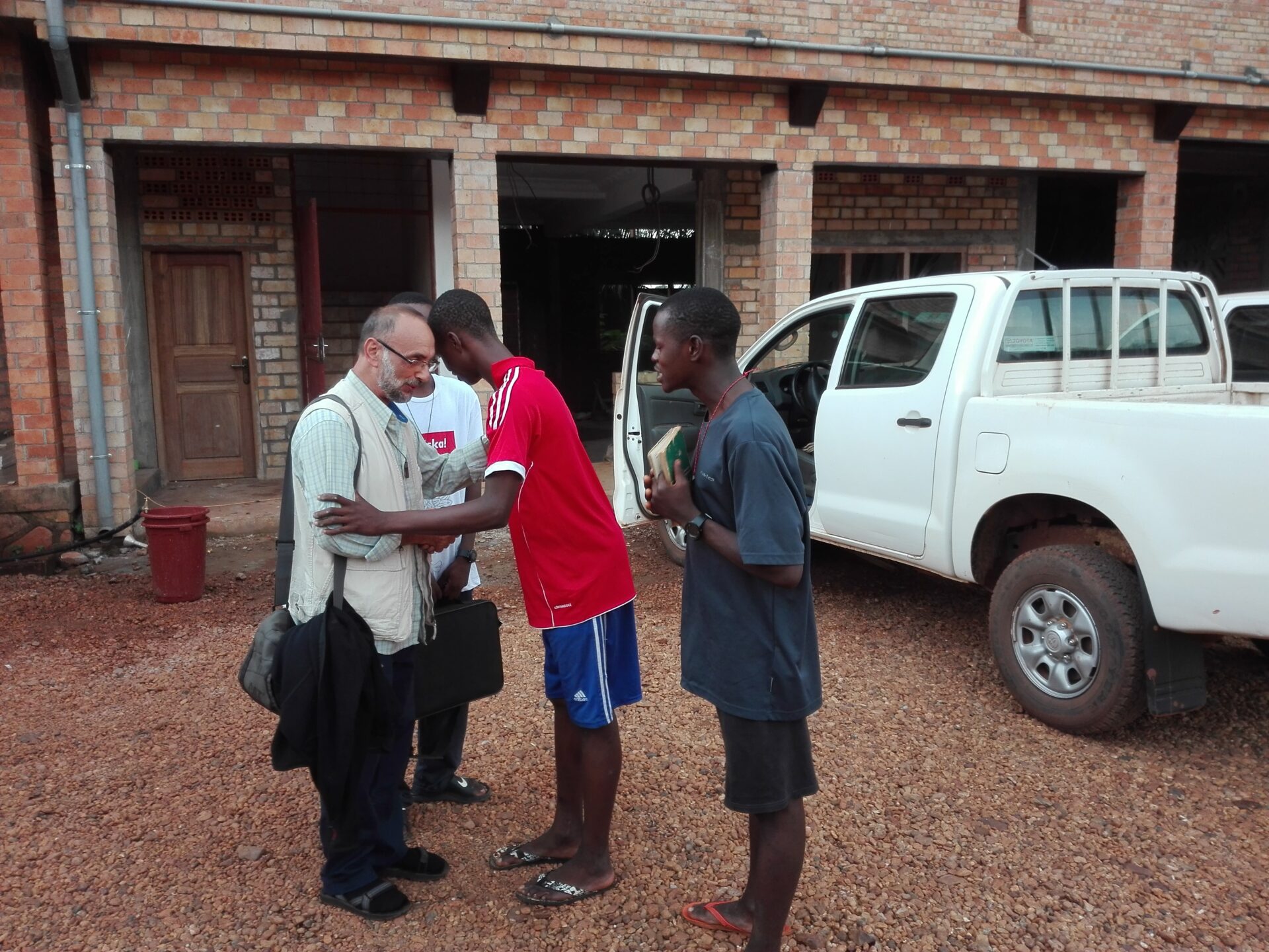 Wybraliśmy się zatem wraz młodymi braćmi do sąsiedniej diecezji, do Mbaiki. To jakieś 100 km drogą asfaltową. Jednak po porze deszczowej jest na niej wiele dziur, więc podróż jest dość męcząca. Po drodze przejeżdżaliśmy przez Berengo, miejscowość gdzie znajduje się baza rosyjskiego wojska, które formuje armię narodową (FACA – Force Armée Centrafricaine) oraz zatrzymaliśmy się w Bobangui, rodzinnej miejscowości pierwszego prezydenta RCA, Barthelemy-go Bogandy. Znajduje się tam dość pokaźny monument i grób ówczesnej głowy państwa. Do Mbaiki dotarliśmy ok godziny 11:00 po porannej Mszy w Bimbo. Odwiedziliśmy biskupa Rino, zwiedziliśmy katedrę, pomodliliśmy się modlitwę brewiarzową i wjechaliśmy do centrum miasta, by coś zjeść. Złapała nas tam straszna ulewa, więc dobrze było posiedzieć w „restauracji” pod blaszanym dachem. Podano oczywiście maniok i tym razem załapaliśmy się na sibisi (czyli zwierzę leśne, większe od szczura). Jeden z braci zamówił jednak podroby z kozy. Wyglądało mało apetycznie. Po sutym obiedzie zajrzeliśmy do oddziału Uniwersytetu z Bangui. To dość duży teren, gdzie znajdują się klasy wykładowe, czteropiętrowy akademik i budynki gospodarcze. Jest tu bowiem odział weterynarii i leśnictwa. Następnie skierowaliśmy się do małej kapliczki Serca Pana Jezusa na obrzeżach miasteczka, gdzie rozpościerał się piękny widok na zalesioną dolinę. W drodze powrotnej zatrzymaliśmy się u sióstr Misjonarek Miłości na kawę. Do domu wróciliśmy na godzinę 19.00.