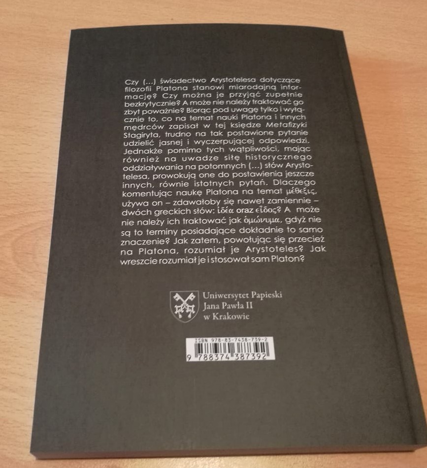 Czy (…) świadectwo Arystotelesa dotyczące filozofii Platona stanowi miarodajną informację? Czy można je przyjąć zupełnie bezkrytycznie? A może nie należy traktować go zbyt poważnie? Biorąc pod uwagę tylko i wyłącznie to, co na temat nauki Platona i innych mędrców zapisał w tej księdze Metafizyki Stagiryta, trudno na tak postawione pytanie udzielić jasnej i wyczerpującej odpowiedzi. Jednakże pomimo tych wątpliwości, mając również na uwadze siłę historycznego oddziaływania na potomnych (…) słów Arystotelesa, prowokują one do postawienia jeszcze innych, równie istotnych pytań. Dlaczego komentując naukę Platona na temat methexis używa on – zdawałoby się nawet zamiennie– dwóch greckich słów: idea oraz eidos? A może nie należy ich traktować jak homonyma, gdyż nie są to terminy posiadające dokładnie to samo znaczenie? Jak zatem, powołując się przecież na Platona, rozumiał je Arystoteles? Jak wreszcie rozumiał je i stosował sam Platon?